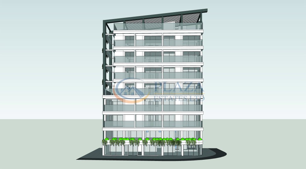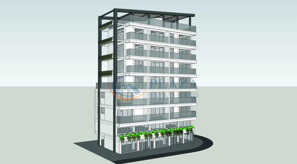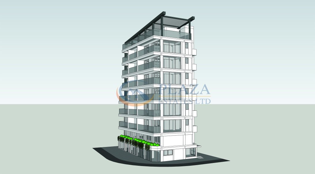 This is a mix-use project comprising a shop, a cafeteria, 18 apartments, and a bar on the rooftop.