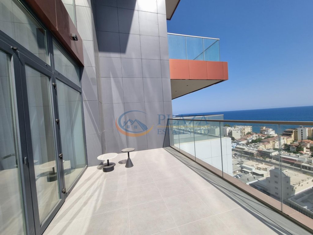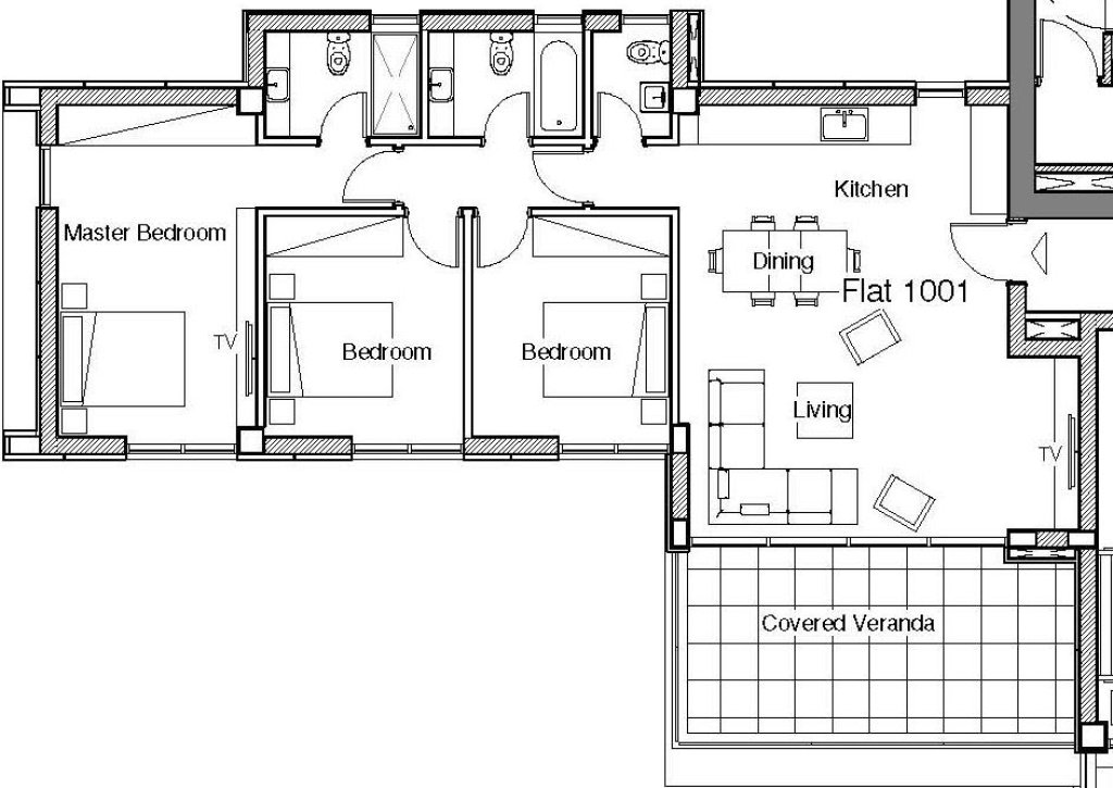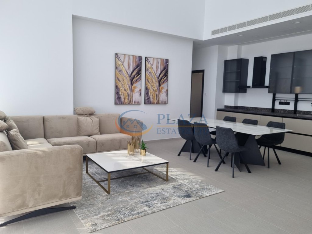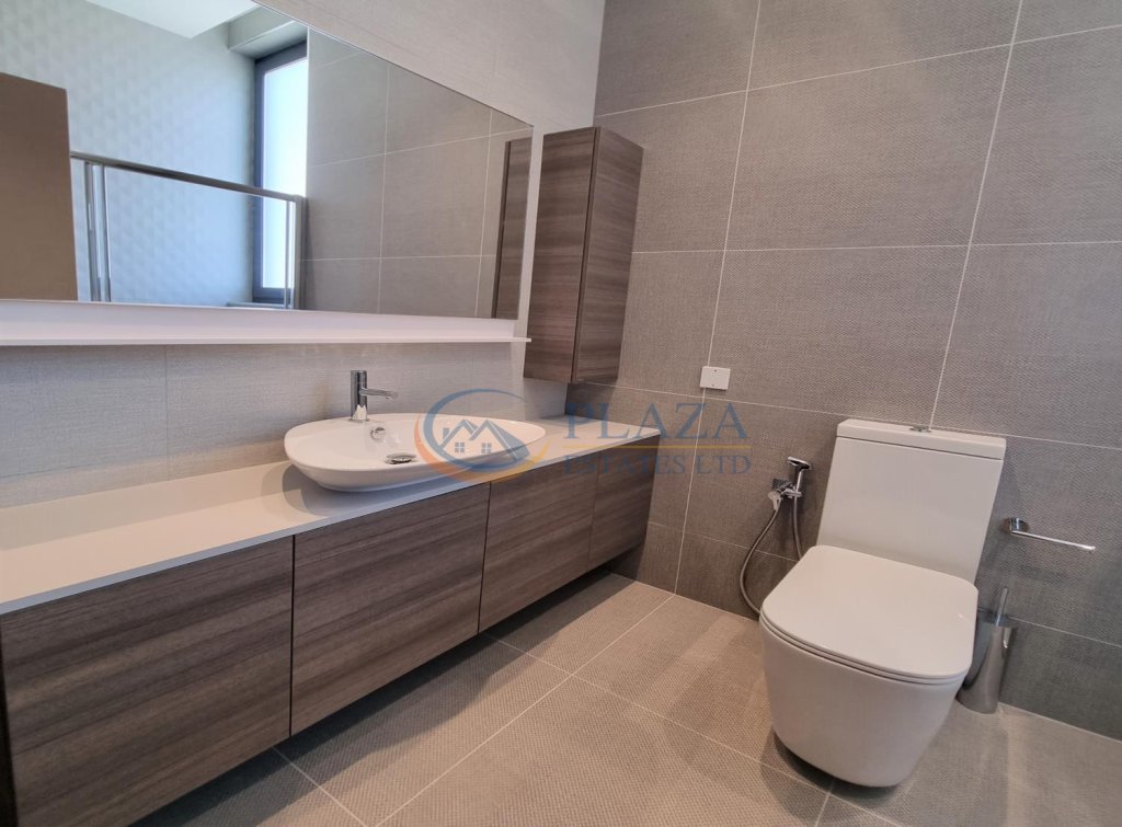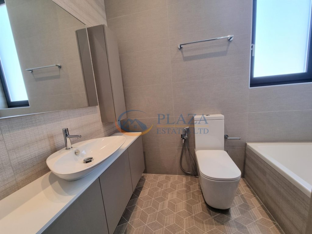 The apartment comprises an open-plan kitchen, a dining area, a living room, a veranda, 3 bedrooms, 2 bathrooms (one of them is en-suite in the master bedroom), and a guest toilet.