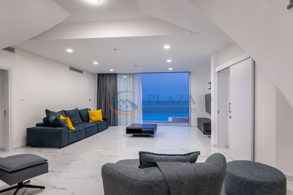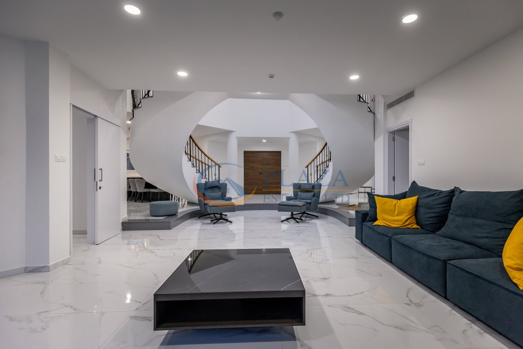The villa’s eye-catching architectural design is a perfect example of how aesthetics and functionality can be skilfully aligned. The ground floor living area features a spacious living room, kitchen, and dining room wrapped around a beautiful atrium with a skylight that floods your home with natural daylight.