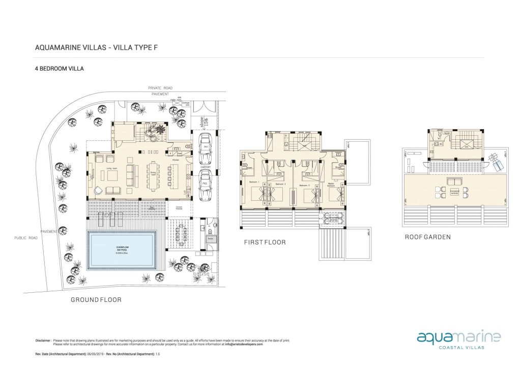 The gated residence comprises different types of villas with 3, 4, or 5 bedrooms.