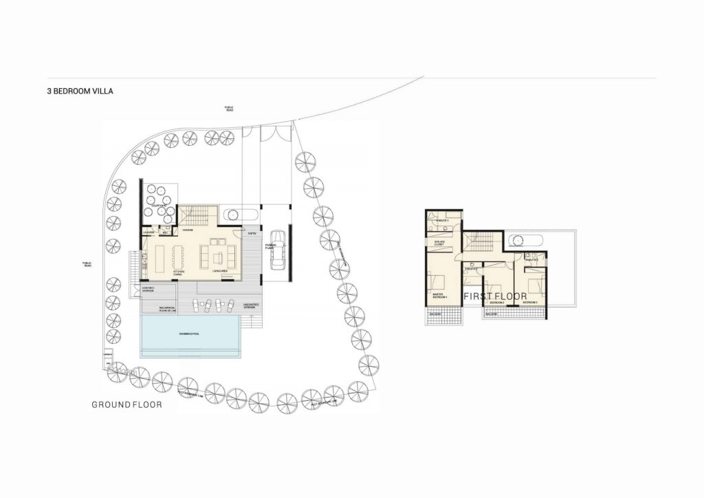 All villas have a private swimming pool, large terraces, and spacious interiors with high-quality finishes.