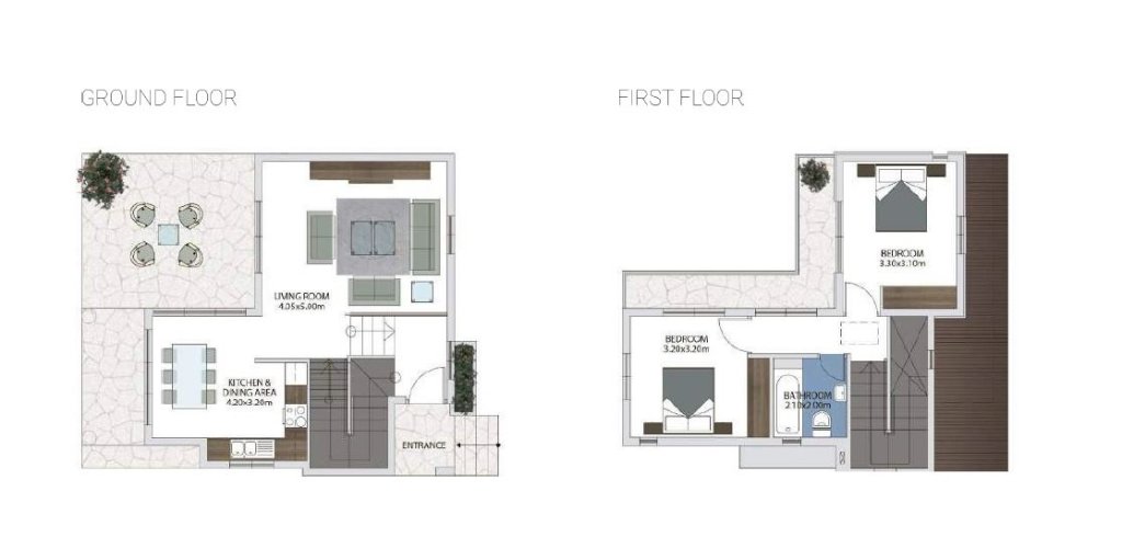 На втором этаже расположены 2 спальни, 1 ванная комната и веранда.