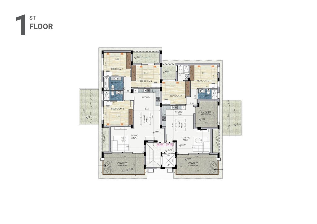 Резиденция состоит всего из 4 квартир: 2 квартиры на нижнем этаже и 2 пентхауса на первом этаже с частными садами на крыше.
